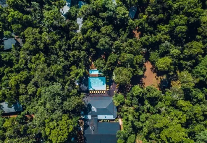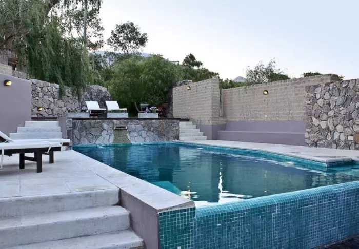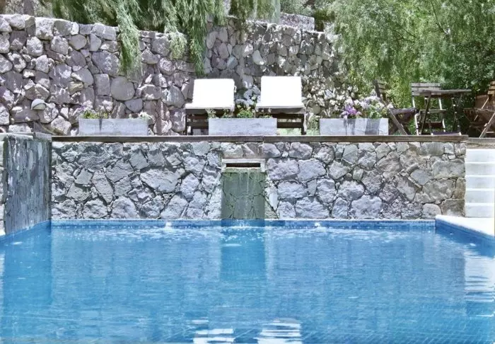 Hotellet har et stort svømmebasseng i hagen, og der kan du ta en forfriskende dukkert eller bare ligge med lukkede øyne og lytte til brusen fra vannfallene – det er ren terapi.