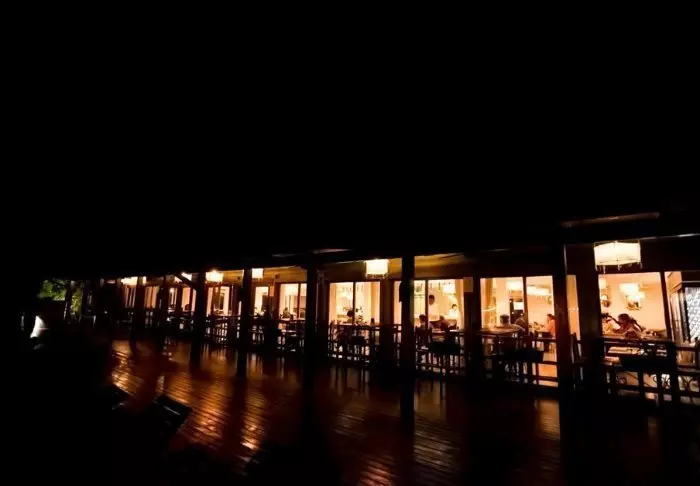 På små gangstier av tre kommer du fra rommene og ned til basseng- og restaurantområdet. Her kan du slappe av og ta en forfriskende dukkert i det store svømmebassenget etter en dag med mange opplevelser.
