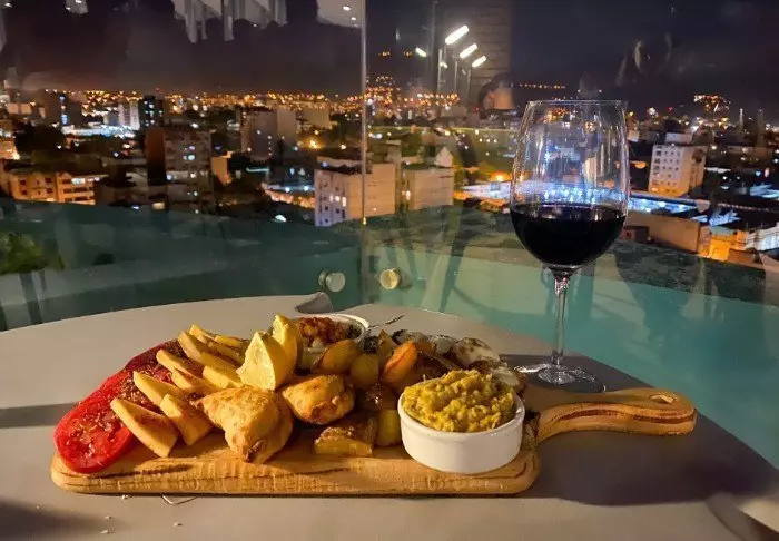Hotellet har hele tre restauranter. I 2. etasje ligger frokostrestauranten, der den inkluderte frokosten serveres som buffet. I første etasje ligger restauranten og baren Los Cerros som serverer smakfulle lokale og internasjonale retter. Hvis du bare er litt småsulten, kan du spise tapas og snacks på hotellets takterrasse med flott utsikt over byen og San Bernardo-fjellet. Vi kan også varmt anbefale å nyte solnedgangen her oppe med et glas lokalprodusert rødvin i glasset.