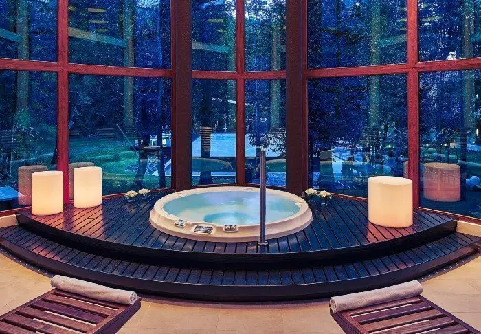 Hvis du har lyst til å slappe av, kan du ta en dukkert i det oppvarmede svømmebassenget innendørs, varme deg opp i saunaen eller bestille en massasje (mot ekstra betaling).