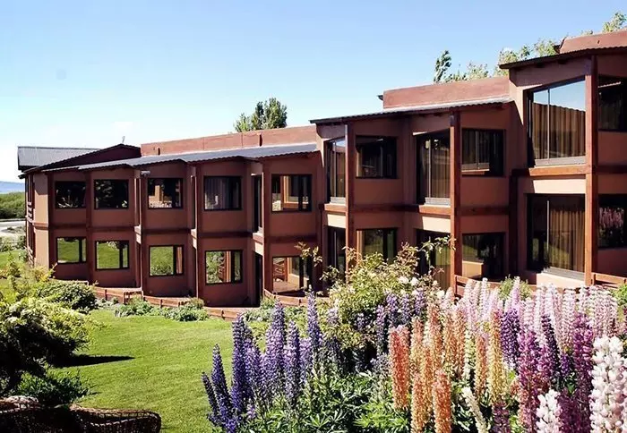 Hotellet ligger vakkert til ved Lago Argentino og er bygget i harmoni med Patagonias naturlige omgivelser.