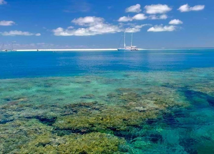 Seilturen ut hit tar omtrent to timer. Underveis serveres det formiddagskaffe, og en marinbiolog forteller om revet. Båten ligger for anker utenfor sandbanken, og de neste timene tilbringer du med å utforske det fantastiske korallrevet.
