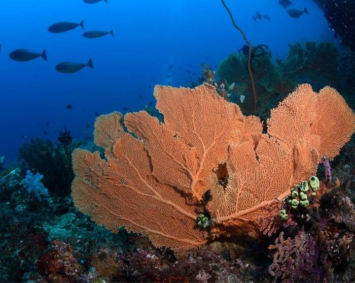 Du legger til ved tre forskellige rev i dag, og alle tre stedene har du mer enn en time til å snorkle eller dykke.