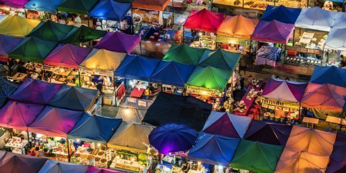 Uansett om du liker å handle eller ikke: det er morsomt å ta en tur til Bangkoks livlige markeder, og dem er det mange av rundt omkring i byen. Her kan du kjøpe alt fra smykker, vesker og klær til deilig thailandsk mat til en billig penge, og stemningen er alltid på topp når der prutes om prisen i de mange bodene.