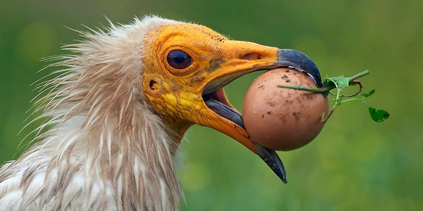 Den egyptiske gribben (Neophron percnopterus) har også et kosthold som består av mer enn bare åtsler. Den er kjent for å bruke steiner til å knuse strutseegg, som den deretter spiser.