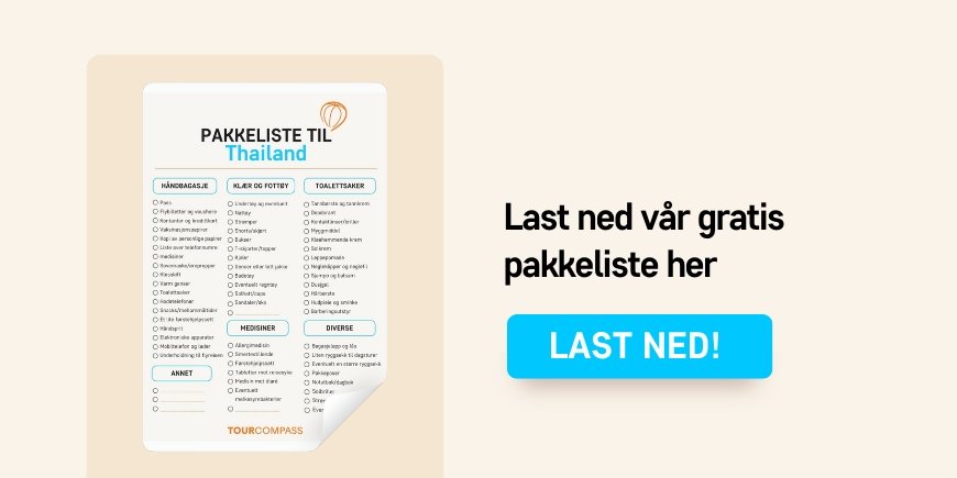 Les innlegget vårt om været i Thailand, og tilpass pakkelisten din til årstiden du reiser i.