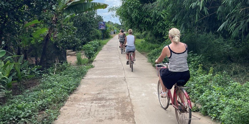 Neste stopp på reisen var Kratie, som ligger i den østlige delen av Kambodsja, ved Mekong-elven. En kjøretur på 6-7 timer, men vi kunne nyte turen og inntrykkene av det frodige og grønne Kambodsja underveis. I Kratie bodde vi to netter på den lille øya Koh Trong i Mekong-elven. Du kan godt bo i Kratie by, men Koh Trong helt klart stedet å bo. Vi syklet rundt på øya, gjennom rismarker og plantasjer. Innbyggerne på øya er utrolig vennlige, og overalt møtte vi den vennlige, smilende lokalbefolkningen. Underveis stoppet vi for å plante trær og smake på lokale pomelo-frukter. Besøket på det lokale matmarkedet i Kratie og båtturen på Mekong-elven for å se de sjeldne Mekong-delfinene var også flotte opplevelser. For oss ble Kratie enda et høydepunkt på reisen.