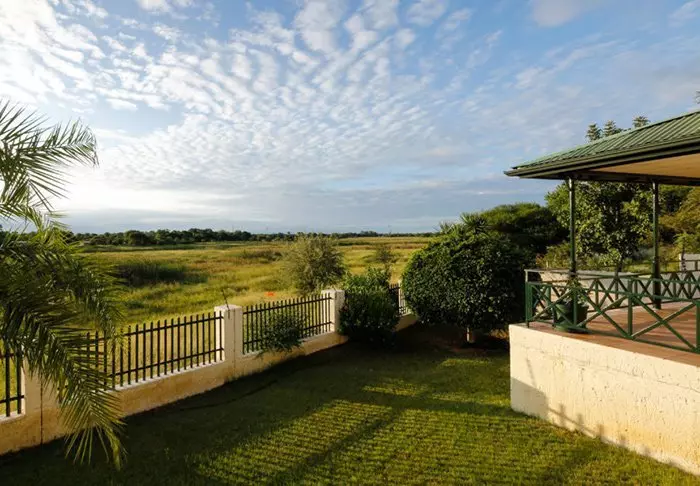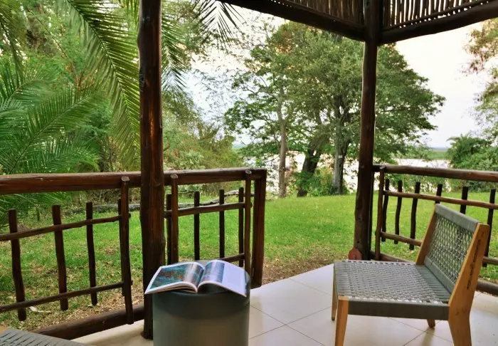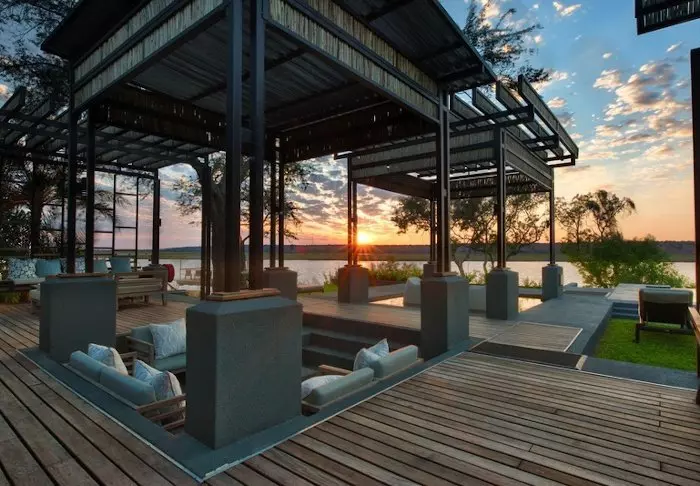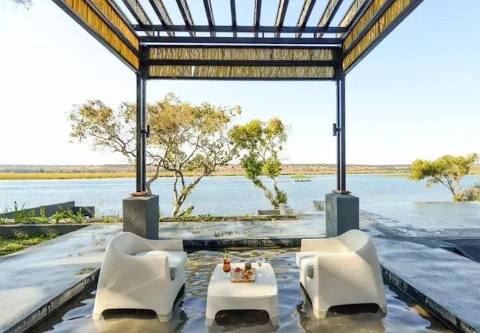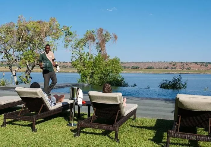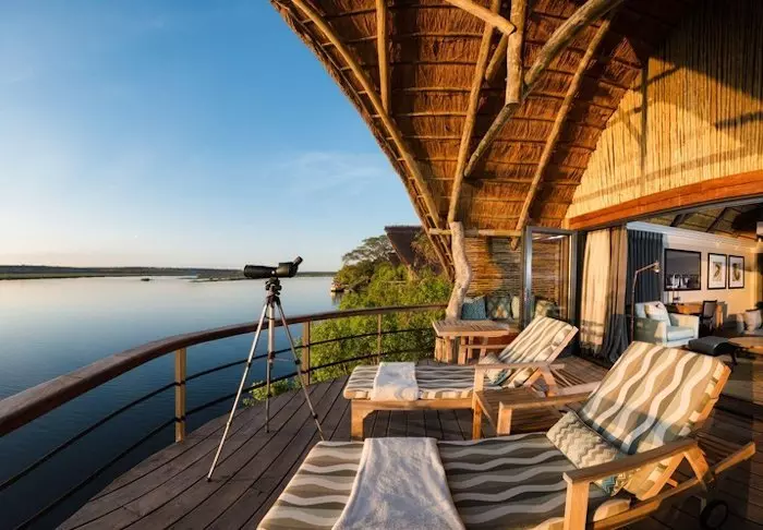 Alle de 15 villaene er bygget på pæler over Chobe-elven. Fra de store balkongene har du enestående utsikt til elven og den store øya Sedudu, som ligger midt ute i elven. Du trenger faktisk ikke flytte deg fra terrassen mens du er her. Dagen lang kan du sitte og betrakte livet på elven. Elefanter som bader, båter med turister som kjører forbi, flodhester som plasker og fugler som setter seg på rekkverket til terrassen. Blir du tørst kan du bare rusle inn til din egen minibar, som er full av kalde drikkevarer.