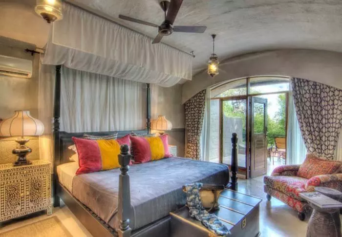 Hele lodgen er stemningsfullt innredet i maurisk stil med hvelvede tak, lanterner, store puter og en stilig og smakfull blanding av nøytrale og sterkere farger. Lodgen har fire restauranter, to barer, 6 loungeområder, en liten butikk, svømmebasseng, spa, boma – og en stor, frodig hage.