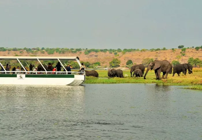 Her er det en 250 meter lang boardwalk langs elven med flere utsiktsplattformer med myke stoler, halvskygge og en uforlignelig utsikt til Chobe-elven og områdets mangfoldige dyreliv. Nyt solnedgangen med en kjølig drink i hånden – få ting i verden er vakrere enn en solnedgang i Chobe nasjonalpark.
