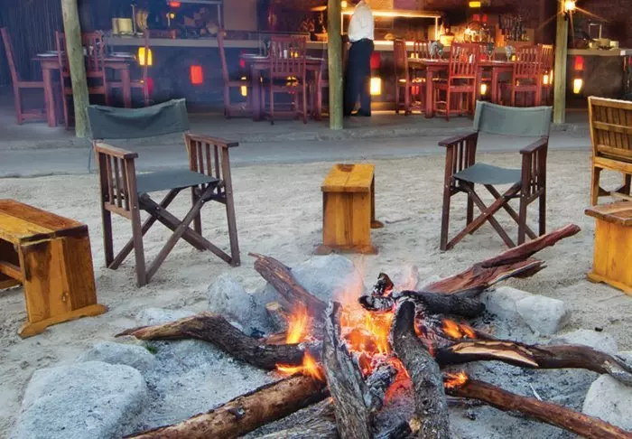 Det virkelige trekkplasteret på Maun Lodge er bar- og restaurantområdet, for det er veldig hyggelig. Både restauranten og baren ligger ved en utendørs bålplass der det om kvelden ofte tennes bål, slik at man kan spise middag i skjæret fra flammene.
