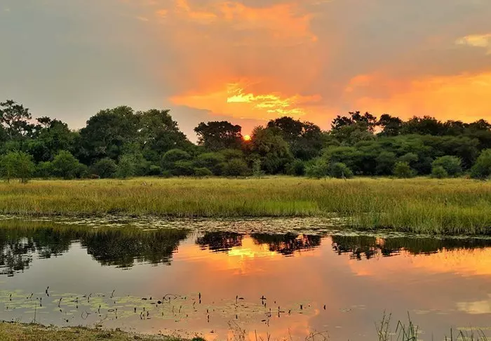 Det er lett å komme hit med båt. Cirka 15 minutters båttur fra den livlige byen Kasane kommer du til en helt annen verden! Før du kommer frem til lodgen må du i land og stemple passet ditt på det mikroskopiske grensekontoret som markerer Namibia. På Namibia-siden er det helt rolig. Lodgen ligger for seg selv, og det eneste du hører er fuglekvitter og gryntingen fra flodhestene.