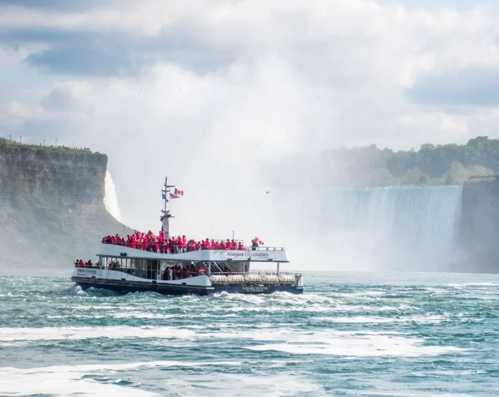 Bli med på en spennende 20-minutters båttur rett inn i hjertet av Niagara Falls, der du kommer helt tett på det mektige fossebruset og den forfriskende tåken.