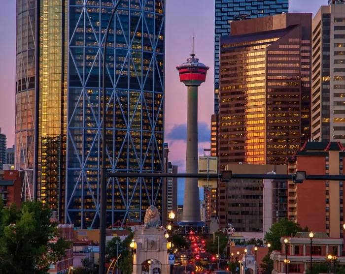Calgary, som er kjent for den årlige Stampede-festivalen, ligger vakkert til mellom den strømmende Bow River, Rocky Mountains og prærien. Et besøk til Calgary Tower er et høydepunkt – med sine 191 meter byr tårnet på en fantastisk utsikt over både byens skyline og de snødekte toppene i Rocky Mountains som ruver i det fjerne.
