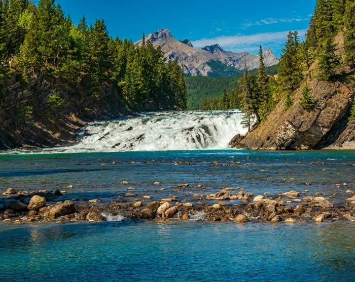 Etter noen timer ankommer du den sjarmerende fjellbyen Banff, som ligger midt i selve Banff nasjonalpark. Den brusende Bow River renner gjennom byen, og vi anbefaler en spasertur til de kjente Bow Falls, som du enkelt når til fots via opparbeidede stier eller med sykkel.