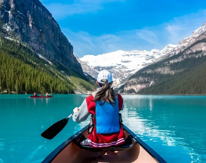 Utforsk det billedskjønne landskapet til fots, eller lei en kajakk eller kano foran Fairmont Chateau. Det er også fantastisk bare å sitte i vannkanten og la tiden stå stille et øyeblikk, eller kanskje du vil spasere langs innsjøen og oppleve den fra flere ulike vinkler.