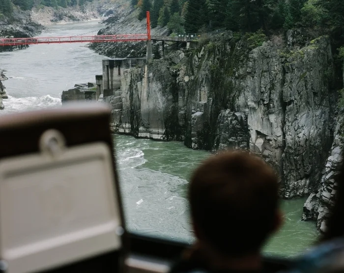 Underveis passerer du Hell’s Gate – en 35 meter bred kløft der Fraser River buldrer gjennom med svimlende 757 millioner liter vann hvert minutt. Et imponerende skue og et bevis på naturens enorme krefter.
