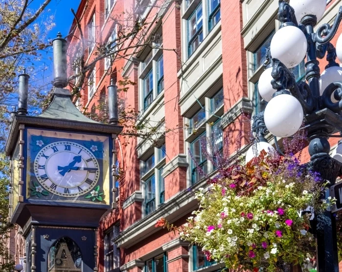 I byens eldste nabolag, Gastown, finner du et av verdens få dampdrevne klokker – Gastown Steam Clock fra 1977 – som fremdeles «plystrer» hver time. Området har en sjarmerende atmosfære med brosteinsbelagte gater og gamle gasslykter, og er et perfekt sted å oppsøke hvis du leter etter små spisesteder med ekte lokal stemning.