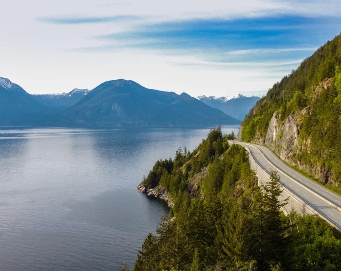 Selv om du allerede har kjørt på flere ikoniske veier, er dagens rute heller ikke et unntak. Fra Whistler følger du enda en berømt del av Highway 99, kjent som “Sea to Sky Highway”. Som navnet antyder vil du i dag virkelig kunne oppleve kontrasten mellom havet, “Sea”, og himmelhøydene, “Sky” – fra Whistlers majestetiske fjell til dype fjorder.