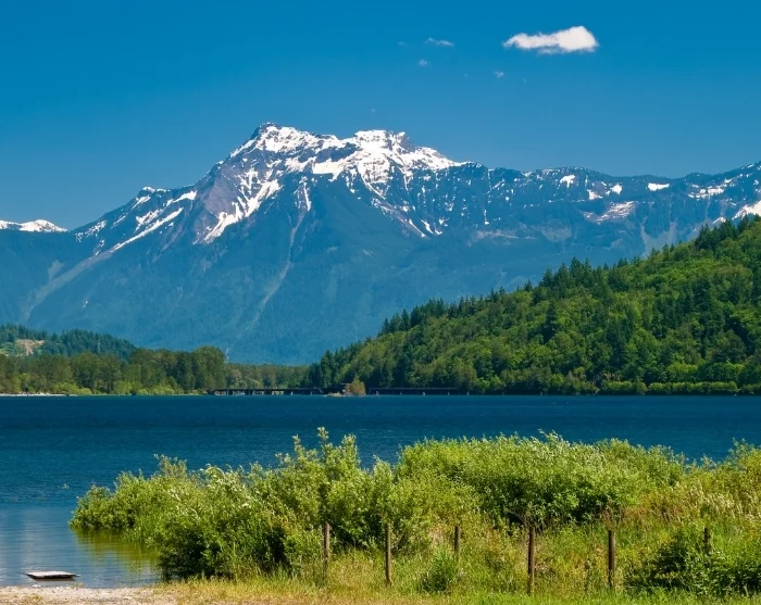 Vi anbefaler på det varmeste et stopp etter omtrent 1,5 times kjøring ved den lille stranden i Harrison Hot Springs. Her er det perfekt å ta en kaffepause, og i de varme sommermånedene kan du unne deg et forfriskende bad i Harrison Lake.