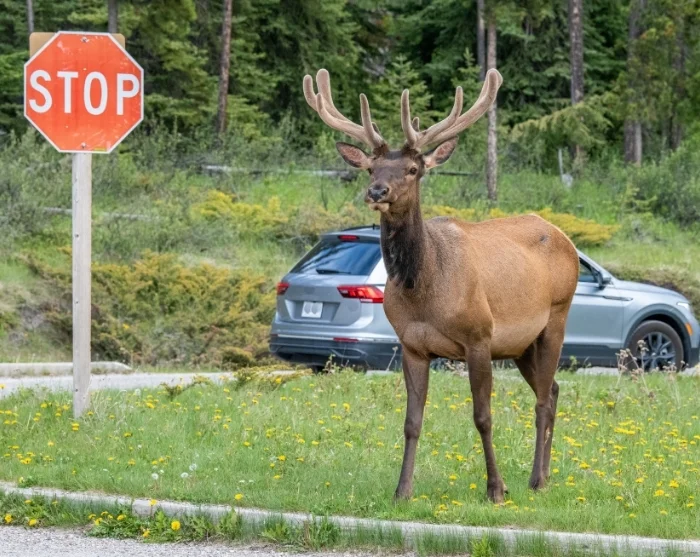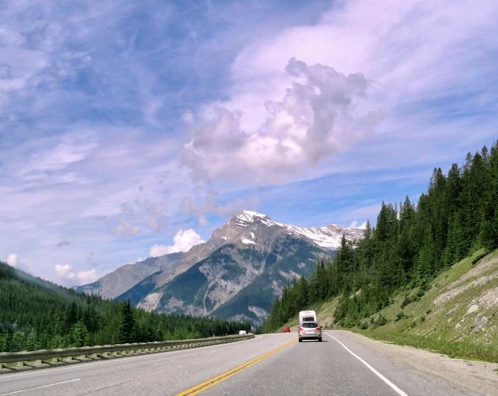 Merk at du i dag forlater British Columbia og kjører inn i Alberta-provinsen. Du krysser også inn i en ny tidssone: Alberta ligger én time foran British Columbia.