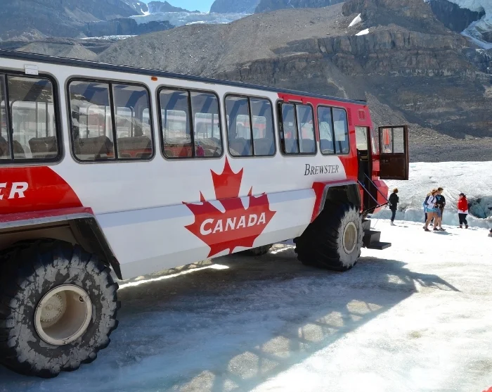 Sammen med de andre deltakerne blir du fraktet opp på den massive breen, mens guiden forteller om områdets geologiske historie. Underveis får du mulighet til å gå ut av bussen og stå på den cirka 400 år gamle isen. Her står du, midt på Athabasca-breen i Rocky Mountains – det er et øyeblikk du sent vil glemme.