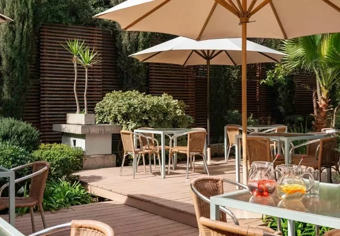 Hotellet har egen restaurant og et lounge-område med hyggelig terrasse.