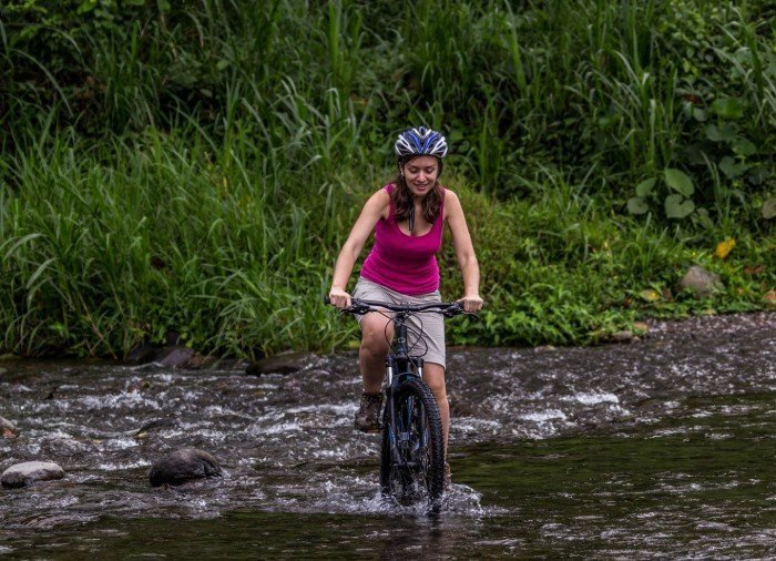 Bli med på en aktiv sykkeltur i den vakre naturen i området rundt Arenal-sjøen.