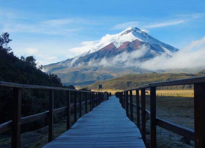Når du går rundt i parken, har du hele tiden den mektige Cotopaxi-vulkanen ved siden av deg, og det er en av verdens høyeste aktive vulkaner.