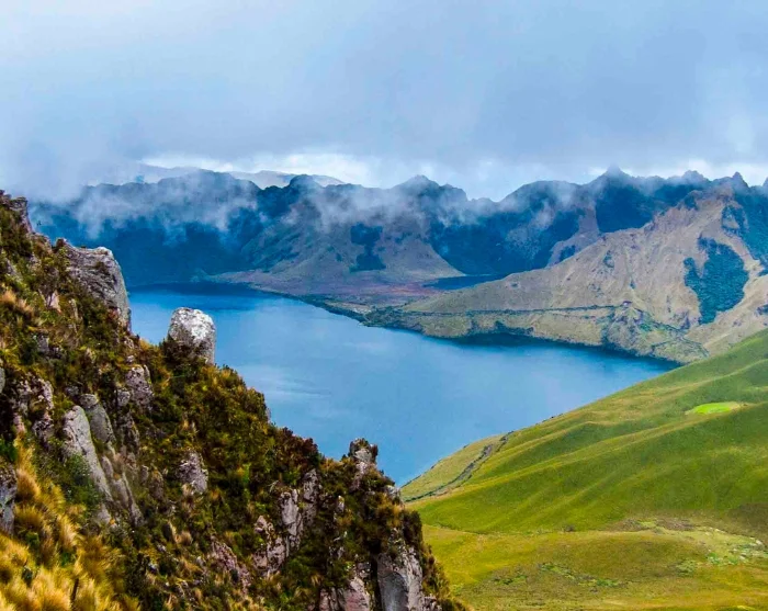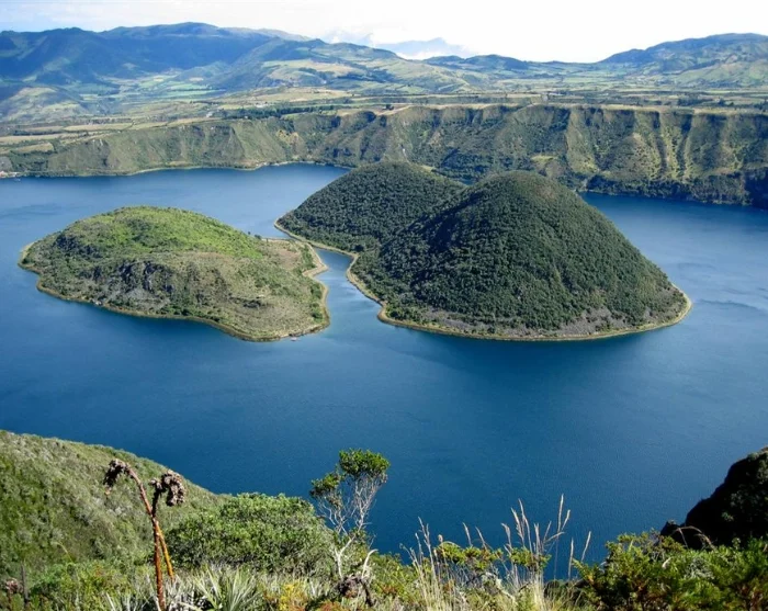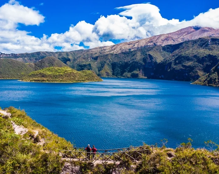Før turen går tilbake til Quito, stopper vi ved den vakre kratersjøen Cuicocha, som har to små øyer liggende midt i det klare vulkanske vannet.