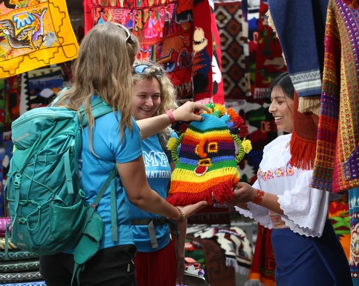 I Otavalo besøker du det berømte markedet hvor du finner håndvevde ponchoer, skjerf, tepper og annet tradisjonelt kunsthåndverk laget av lokale håndverkere og vevere. Markedet er åpent hver dag, men er størst og mest livlig på lørdager. Det er det perfekte stedet for å kjøpe unike og prisgunstige suvenirer – eller for å spasere rundt og nyte atmosfæren og de mange fargene.