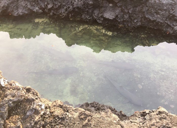 Du blir hentet på hotellet ditt i Puerto Villamil og kjørt til havnen. Herfra seiler du ut til småøyene Las Tintoreras, som ligger ganske nær Puerto Villamil. Først går du i land på en av øyene, der en liten enkel fottur på ca. 15 minutter fører deg til en lagune der det lever nyfødte sjøløver og hvittippede revhaier. På klippene ligger haviguanene nesten oppå hverandre og hviler seg.