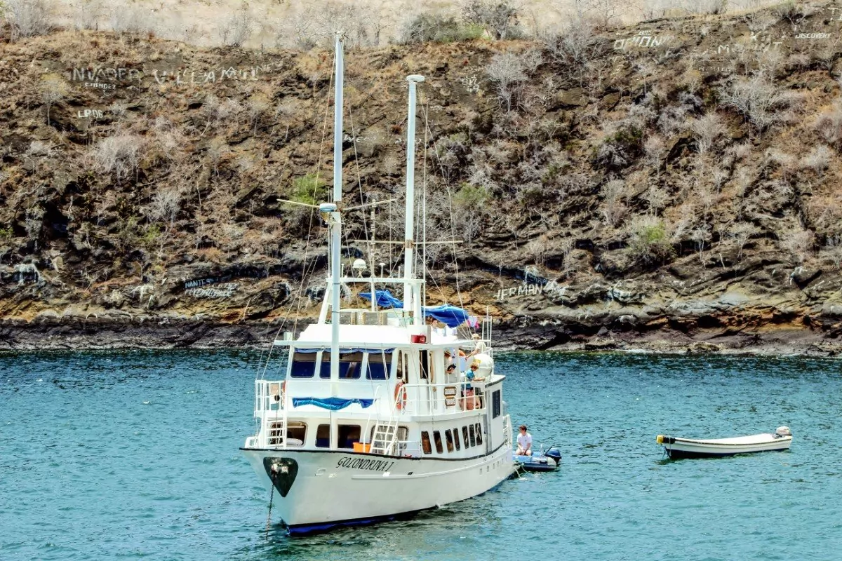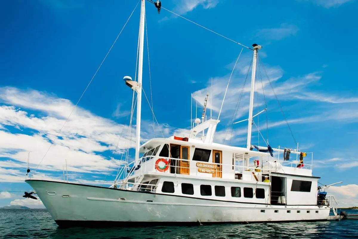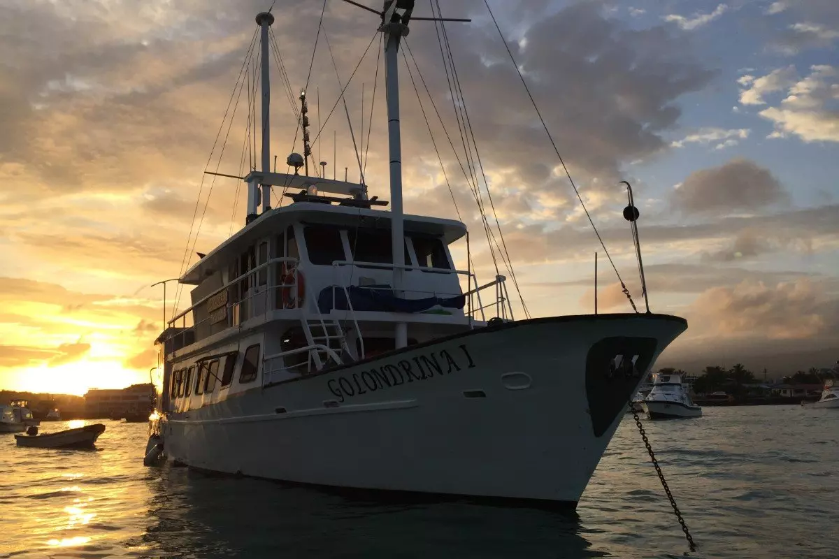 På Baltra flyplass blir du hentet og kjørt til båten Golondrina I, som skal være ditt flytende hjem de neste 5 dagene. Her blir du innlosjert i kahytten din, og deretter blir det et kort velkomstmøte etterfulgt av lunsj. På velkomstmøtet vil guiden din presentere deg for kapteinen, kokken og resten av besetningen, og selvfølgelig de andre gjestene på båten, før ettermiddagens spennende program gjennomgås.