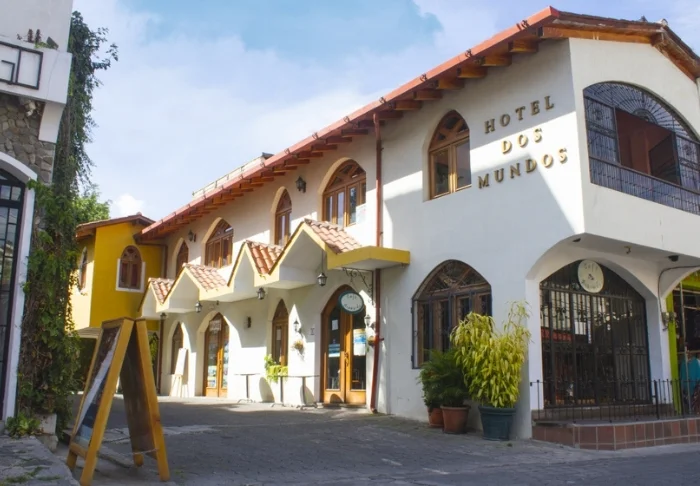 Hotel dos Mundos er en sjarmerende oase som ligger i hjertet av Panajachel, nær Atitlán-sjøen.