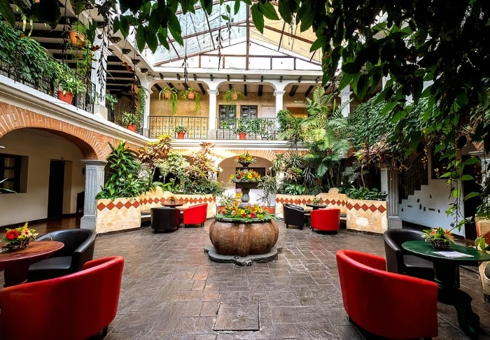 Hotel Porta Antigua er en vakker og stemningsfull oase midt i hjertet av Antigua, kun fem minutters gange fra den sentrale plassen. Hotellet er omgitt av frodige hager og byr på spektakulær utsikt mot de majestetiske vulkanene Agua, Fuego og Acatenango.