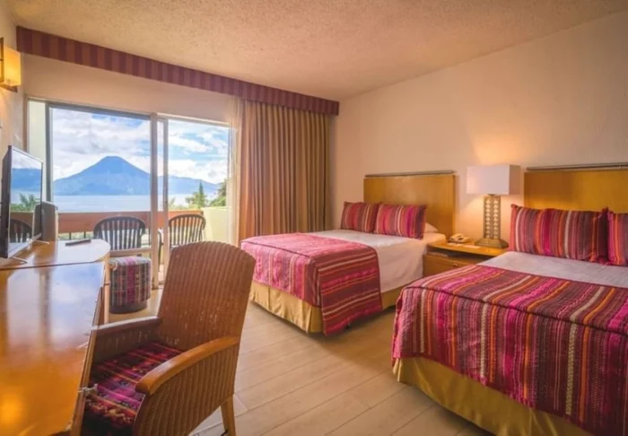 Etter en dag med mange opplevelser kan du ta en dukkert i bassenget eller forfriske deg med en eksotisk drink på en liggestol i hagen. Et par hundre meter fra hotellet finner du Atitlán-sjøen, der du har en helt fantastisk utsikt over vannet med de majestetiske vulkanene ute i horisonten.
