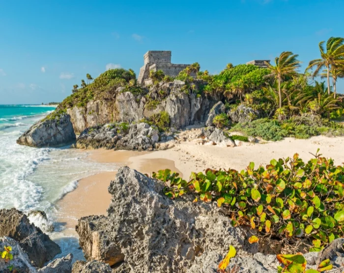 Det er også mulig å kjøpe en “sightseeing-transfer”, slik at du ikke kjører direkte til Playa del Carmen – men i stedet stopper i Tulum underveis, hvor du får oppleve byens berømte mayaruin med sin unike beliggenhet på en klippe med utsikt over det asurblå havet.