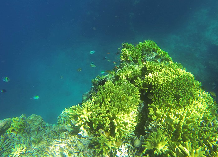 Revet og det marine livet her ved Menjangan er anerkjent av både dykkere og snorklere for å være i absolutt verdensklasse, så det er bare å hoppe uti. Guiden viser deg rundt i vannet, peker på og forteller om de flotte, fargerike fiskene og korallene.
