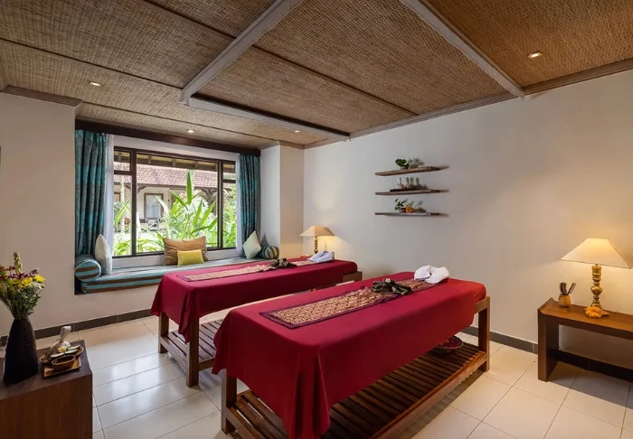 Har du lyst til å unne deg selv noe ekstra, tilbyr resortets spa et utvalg avslappende behandlinger, inkludert massasje, kroppsskrubb og aromaterapi – alt sammen i rolige omgivelser inspirert av balinesiske tradisjoner. Her finner du også en liten butikk med håndlagde suvenirer, kunsthåndverk og lokale produkter, slik at du kan ta med deg et minne fra Bali hjem.