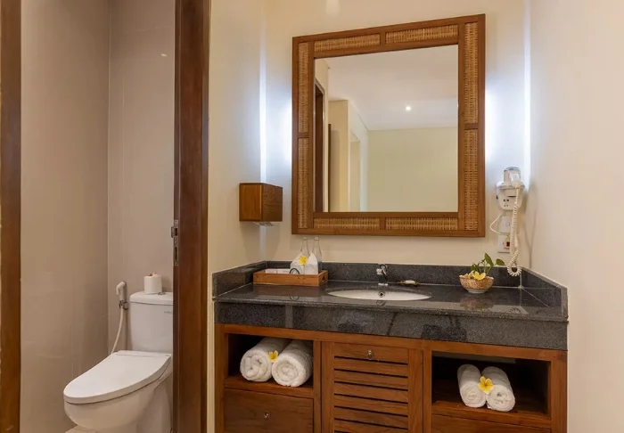 Du bor som utgangspunkt på et Wisma Seni Superior-rom, som er resortets nyeste romtype. Rommet er elegant innredet i balinesisk stil og omgitt av frodige rismarker og et organisk utformet svømmebasseng. Det er lyst og romslig, med aircondition, TV, sikkerhetsboks og Wi-Fi. Den private balkongen med bord og stoler er perfekt for avslapning med utsikt over det grønne landskapet. Badet er innredet i balinesisk stil med separat toalett, vask og dusj.