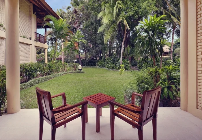 Som standard bor du i ett av hotellets deluxe-rom, som ligger i lave bygninger spredt utover området. Rommene er 40 m² store og har enten en king size-seng eller to enkeltsenger. Innredningen er enkel, med mørke tremøbler, flislagt gulv og rolige, nedtonede farger som skaper en avslappet atmosfære. Alle rom har aircondition, TV, Wi-Fi, minibar, kaffe- og tefasiliteter samt sikkerhetsboks. Badet har dusj og hårføner. Fra den store, private balkongen eller terrassen har du utsikt mot hotellets tropiske hage med palmer og blomstrende busker. Noen av rommene har dør inn til naborommet og passer derfor godt for familier som reiser sammen.