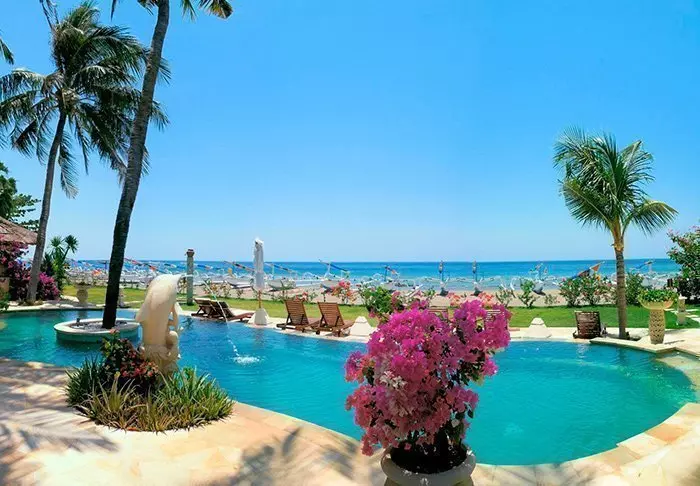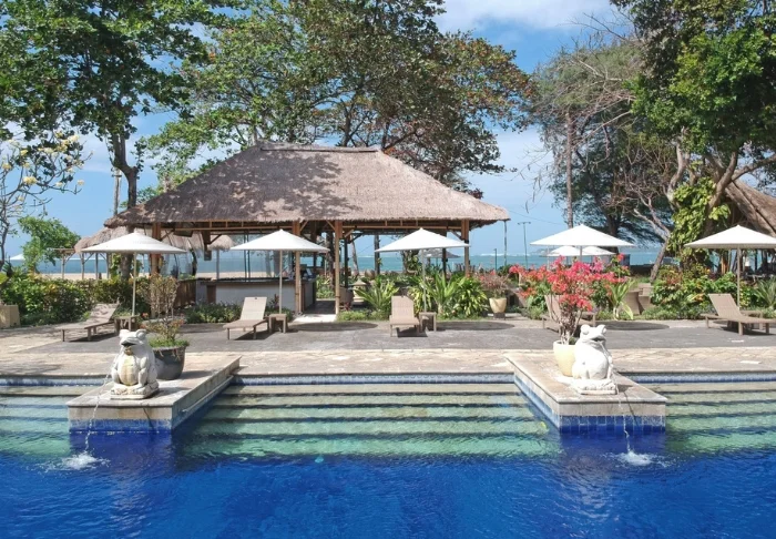 Puri Santrian er et deilig, 4-stjerners resort som ligger like ved en 200 meter lang privat strand i Sanur. Vannet er rolig, og stranden er derfor utrolig barnevennlig.