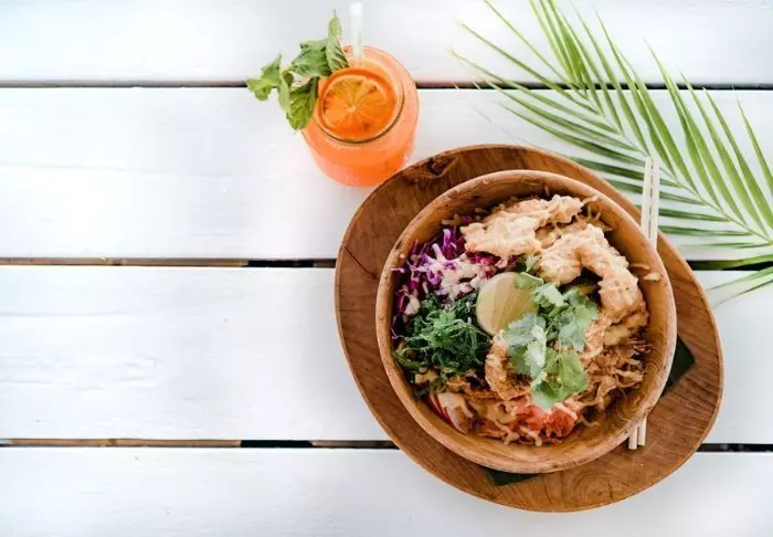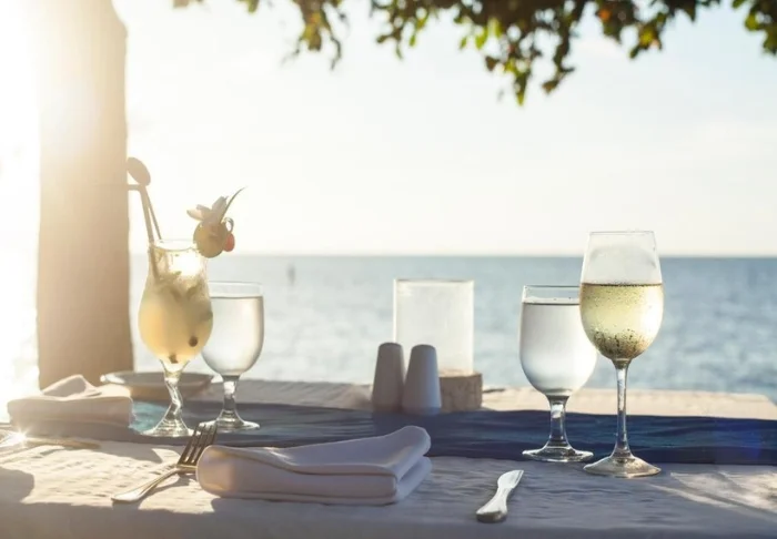 Lunsj kan du spise på The Blue Beach, som ligger ved stranden. Her kan du kose seg med lette retter og snacks under åpen himmel med føttene i sanden.