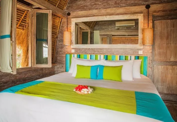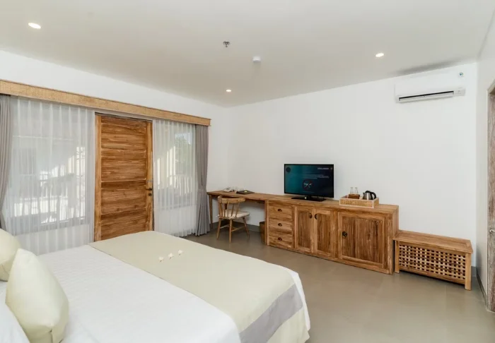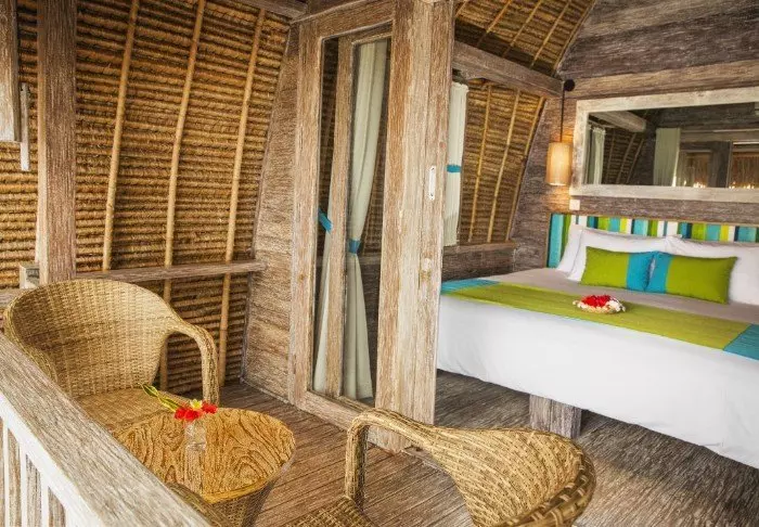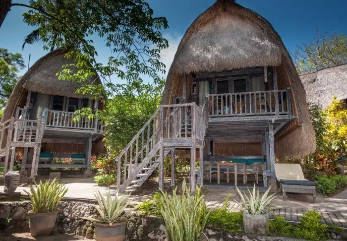 Resorten er omgitt av en stor tropisk hage og bygget i tradisjonell sasak-stil. Alle 35 rom er innredet med vakre naturlige materialer fra gulv til tak og dekorert med flotte, vevde tekstiler. Her er det både aircondition, Wi-Fi, minibar, gratis vann på flaske, safe, TV og DVD-spiller. Badet har regndusj, hårtørker og gratis toalettartikler. Fra balkongen din kan du nyte den lette brisen og utsikten over hagen med mango- og palmetrær eller buktens rolige vann.