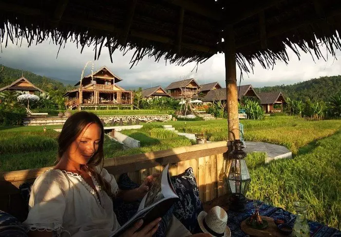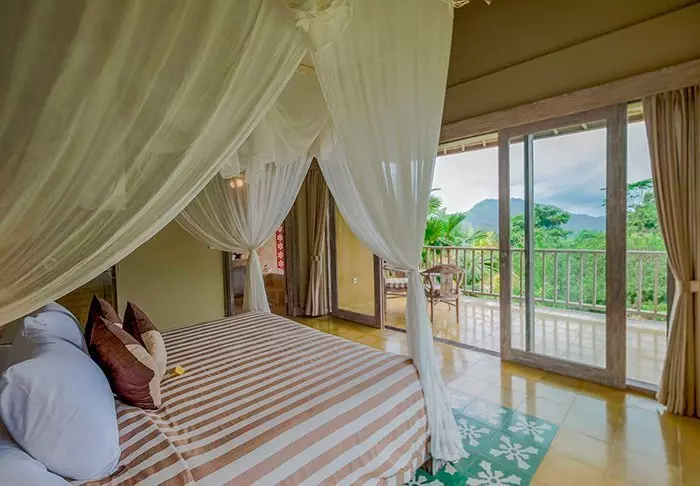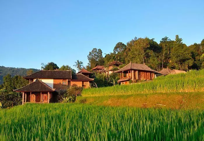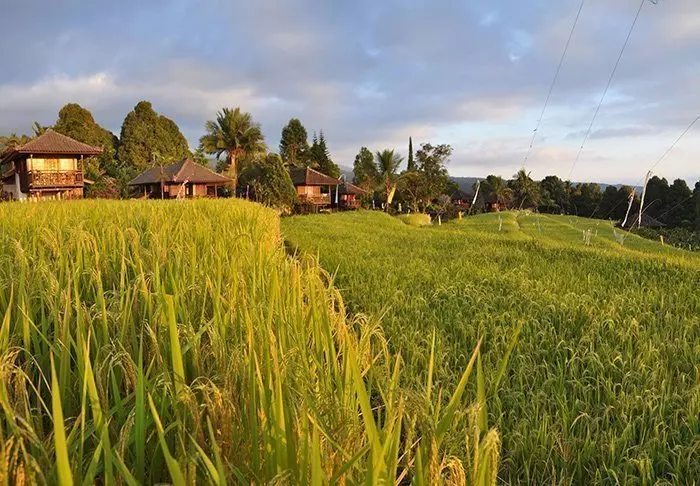 Du bor i sjarmerende bungalower som kalles ”lumbung” og opprinnelig var bygninger som ble brukt til oppbevaring av ris. Alle bungalower er innredet i tradisjonell stil og med fine detaljerte treutskjæringer. De har soverom med myggnett over sengen, bad med dusj eller badekar og en deilig balkong med flott utsikt over fjell og rismarker. Det er gratis Wi-Fi her, men ingen aircondition – det er nemlig ikke nødvendig her oppe i høylandet.