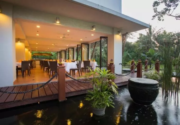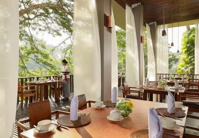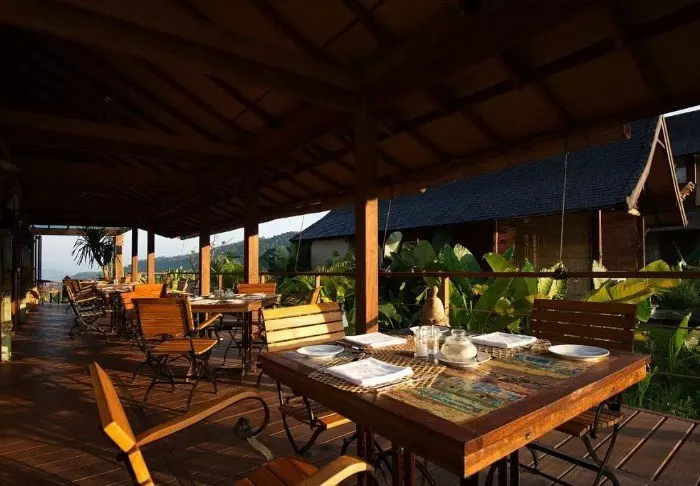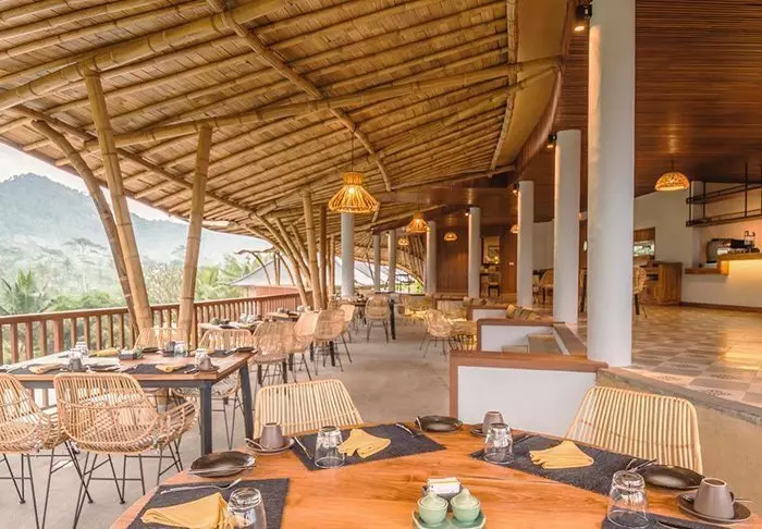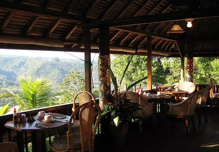 Hotellets restaurant serverer en variert meny med både lokale og internasjonale retter tilberedt med ferske råvarer fra lokalområdet. Her kan du nyte måltidene dine med utsikt over de frodige plantasjene i området.