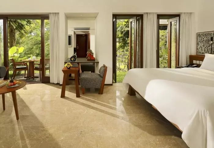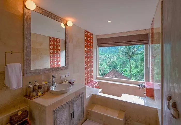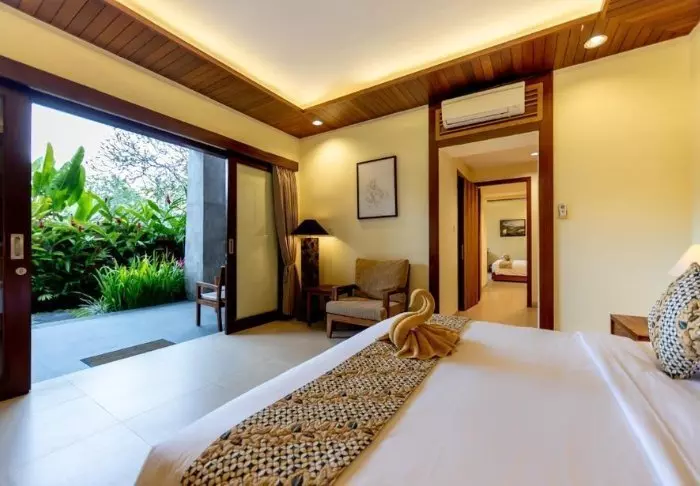 Rommene er 50 kvm store og lekkert innredet i moderne balinesisk stil som glir perfekt inn i de naturskjønne omgivelsene. Alle rommene har WI-FI, aircondition, takvifte, te- og kaffefasiliteter, minibar, gratis flaskevann, verdiboks, tv og telefon. Badet er utstyrt med badekåpe og tøfler, hårføner og toalettartikler. Etter forhåpentligvis å ha hatt en god natts søvn, kan du sette deg ut på din private terrasse, som har utsikt til de grønne omgivelsene. Du kan nyte en kopp dampende te eller kaffe mens du lytter til de mange lydene fra jungelen.