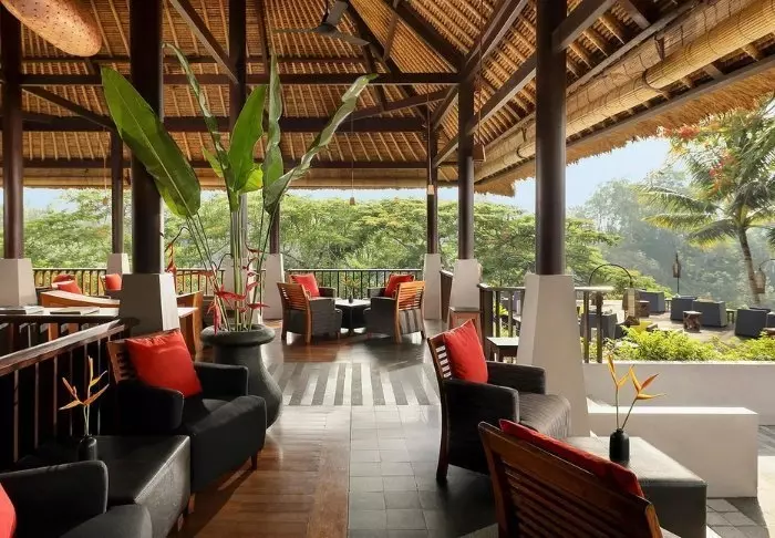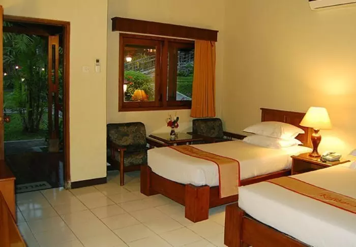 Hotellet er hyggelig og har en deilig avslappet atmosfære. Det er oppført i ekte indonesisk stil med tradisjonelle lumbung-hytter og bungalower.