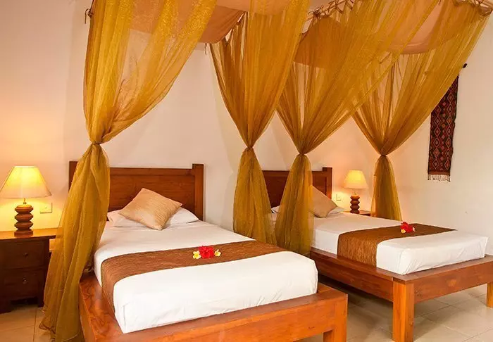 Hotellet består av 18 private bungalower bygget i tropisk stil av bærekraftige og naturlige materialer. Alle bungalower har en elegant himmelseng med myggnett, Wi-Fi, aircondition, minibar, te- og kaffefasiliteter samt delvis åpent bad med dusj, badekåpe og hårtørker. På verandaen kan du slappe av med en god bok og nyte den behagelige brisen.