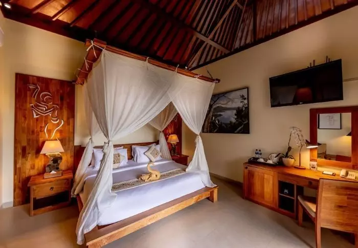 Anumana Village Ubud byr på moderne innkvartering i vakker, balinesisk stil. Rommene har god plass (46 m²) med egen balkong eller terrasse, der du kan nyte utsikten til den frodige hagen. Rommene har alt fra gratis Wi-Fi og aircondition til minibar og te-/kaffefasiliteter. Badene er utstyrt med gratis toalettartikler og hårføner. Det tilbys daglig gratis vann på flaske.